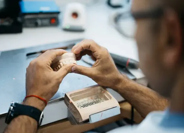 Notre laboratoire dentaire à Puidoux travaille en étroite collaboration avec nos médecins-dentistes afin de façonner des solutions prothétiques modernes et adaptées à nos patients. Nos techniciens dentistes, hautement qualifiés, travaillent avec des équipements de pointe pour garantir des travaux prothétiques d’une qualité supérieure, entièrement « Swiss Made ».