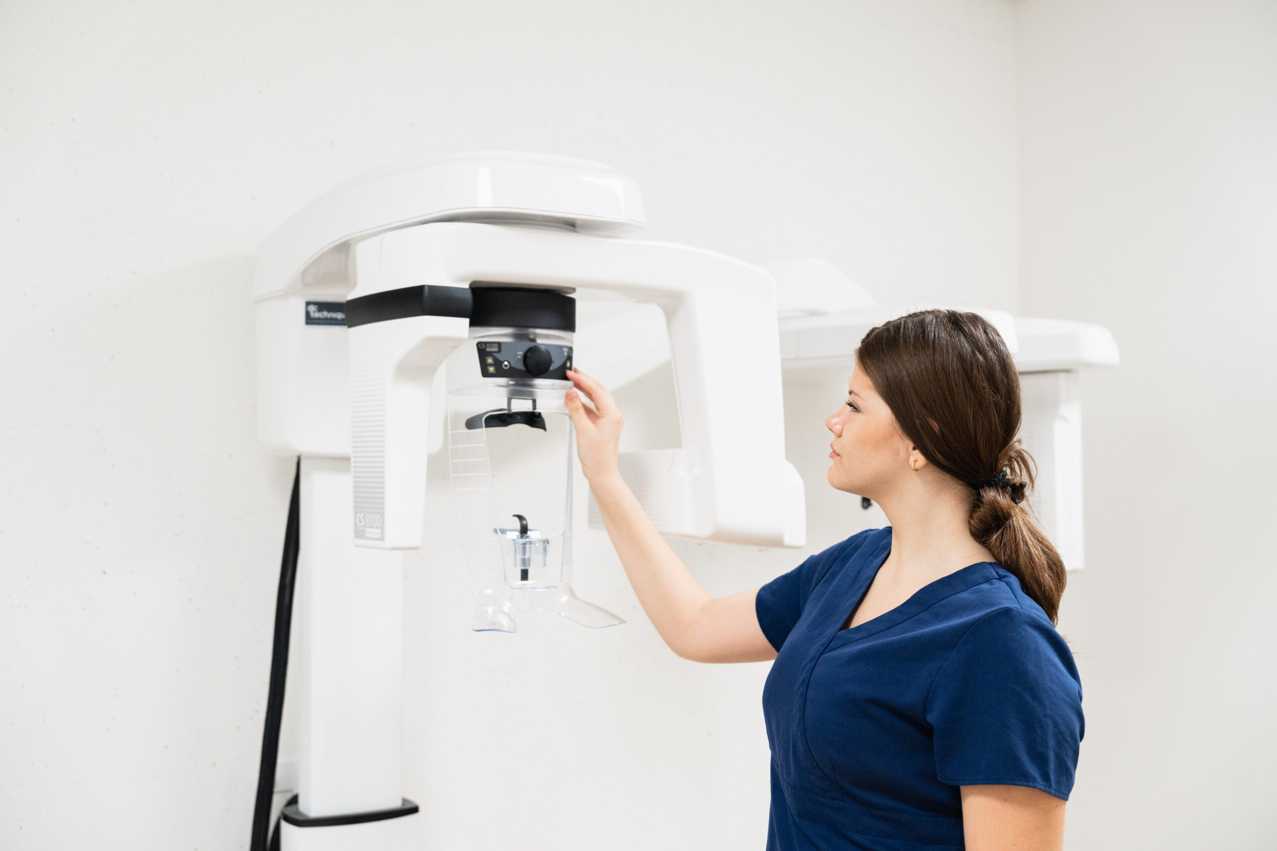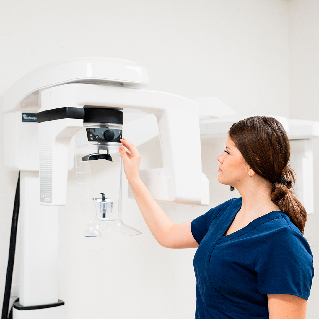 La radiologie dentaire regroupe différents examens d’imagerie permettant d’examiner les dents, les racines, l’os et les mâchoires. Dans nos cliniques, nous réalisons notamment la radiographie panoramique ou orthopantomogramme (OPT), la téléradiographie de profil (céphalométrie) et le Cone Beam CT en 3D.